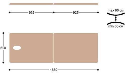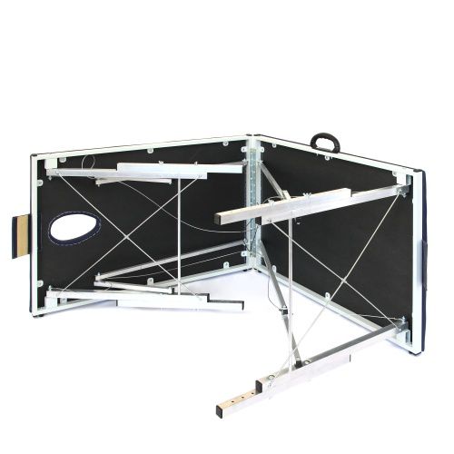 Двухсекционная складная кушетка с системой тросов. Малый вес и компактная система складывания позволяют с удобством использовать стол в качестве мобильного.