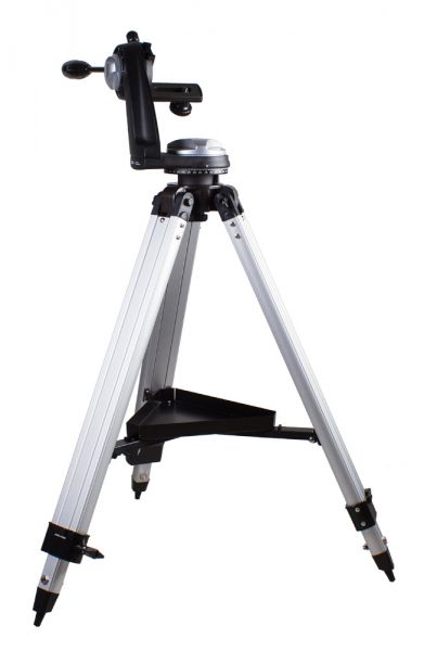 Монтировка установлена на прочную и надежную алюминиевую треногу. Высота треноги регулируется. Чтобы во время наблюдений необходимые аксессуары всегда были под рукой, тренога снабжена специальным лотком.