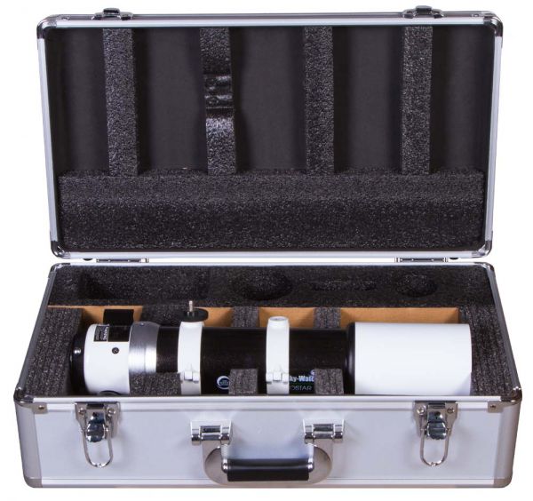 Оптическая труба совместима с любыми аксессуарами с посадочным диаметром 2''. В комплект уже включены крепежные кольца и алюминиевый кейс для хранения и переноски.