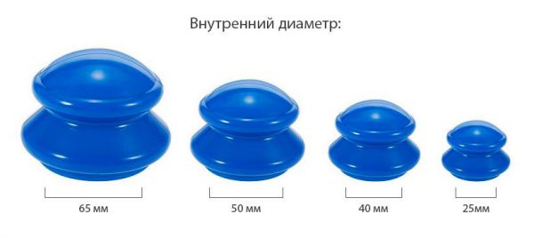 Набор рассчитан для домашнего применения, однако также успешно используется в процессе проведения салонных процедур. Предусмотрено несколько разных по диаметру банок – начиная от 25 мм и заканчивая 65 мм. Это облегчает выбор изделия для проведения массажной процедуры на разных частях тела, включая лицо, ягодицы и т.д.