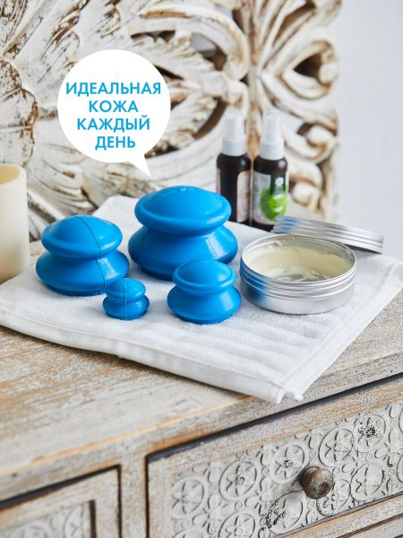 Всего в наборе предусмотрено четыре банки. Что же касается материала изготовления, то это медицинский силикон – максимально прочный, безопасный и долговечный в процессе эксплуатации. При этом, материал не вызывает аллергии, поэтому подходит людям с чувствительной кожей, склонной к частым высыпаниям и раздражениям.