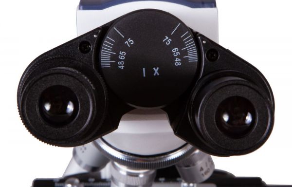 Тринокулярная насадка разделена на бинокулярную визуальную часть и отдельную вертикальную трубку, в которую устанавливается цифровая камера. Насадку можно вращать на 360°, а визуальный блок отклонен на 30-градусный угол. Для наблюдений используются широкопольные окуляры с диоптрийной коррекцией, которые дают 10-кратное увеличение. Револьверное устройство вмещает четыре ахроматических объектива, которые передают детализированную и контрастную картинку. Объективы 40х и 100х имеют пружинящие оправы, 100-кратный объектив используется для наблюдений иммерсионным методом. Оптические поверхности окуляров и объективов защищены антигрибковым покрытием.