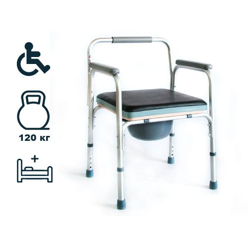 Достоинства: Легкое, компактное, не занимает много места. Устойчивое - абсолютно безопасное. Также предусмотрено антискользящее рифленное покрытие на подлокотниках. Ножки регулируются по высоте. Кресло изготовлено из алюминия. Сидение съемное, с крышкой. Доступная цена.