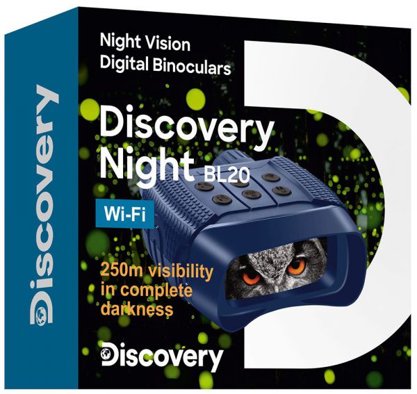 Discovery Night BL20 – бинокль ночного видения с цифровым преобразователем, т. е. его можно использовать не только для ночных, но и для дневных наблюдений. Прибор не боится засветки, эффективно работает при любой освещенности. Днем изображение будет полностью цветным, ночью – черно-белым. Также здесь есть рекордер для записи фото и видео и встроенный модуль Wi-Fi для управления прибором при помощи смартфона или планшета. Этот ПНВ отлично подходит для ночной охоты, разведывания и охраны территорий, спортивного ориентирования на местности.