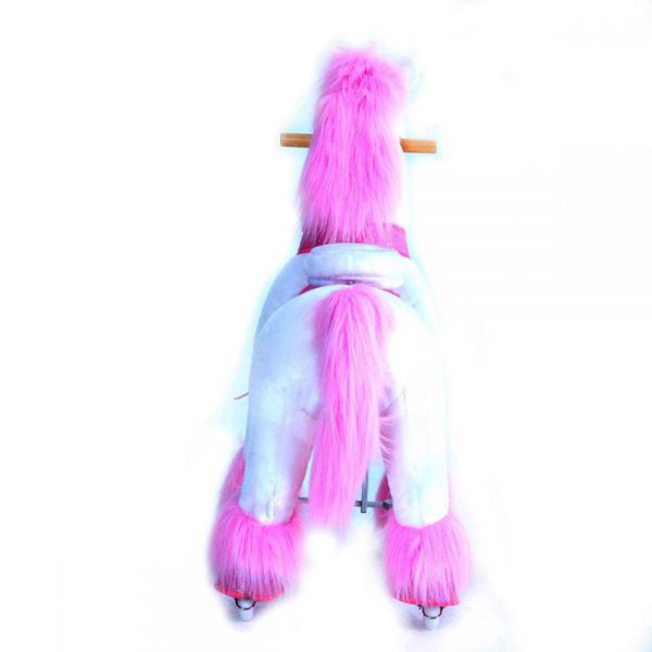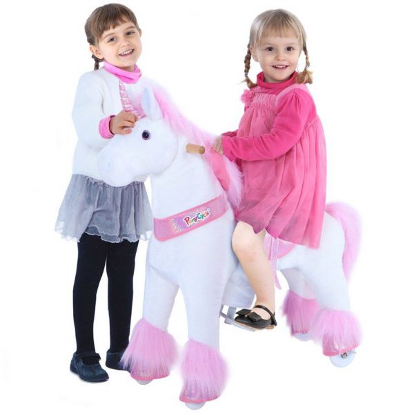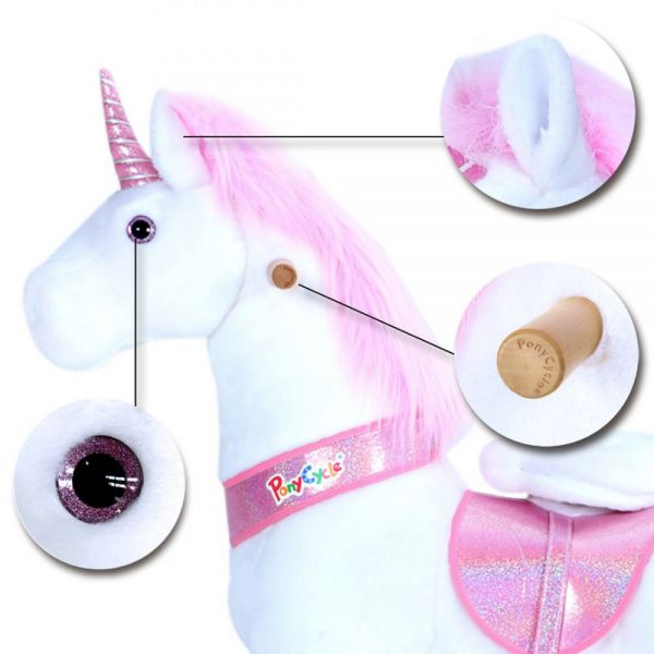 Подходит для малышей, достигших возраста четырех лет. Во время движения наездника стоит придерживать. Имеются ручки, выполненные в форме рожек, расположенных на голове. Ухаживать за лошадкой просто: достаточно использовать обычные моющие средства, не вредящие детям.