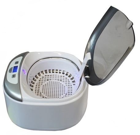 Принцип работы заключается в том, что ультразвуковой генератор превращает электрическую энергию в механические колебания – с помощью этого быстро устраняются любые, даже самые труднодоступные, загрязнения. На корпусе устройства расположены кнопки включения и небольшой дисплей, на котором отображается процесс ультразвуковой очистки.